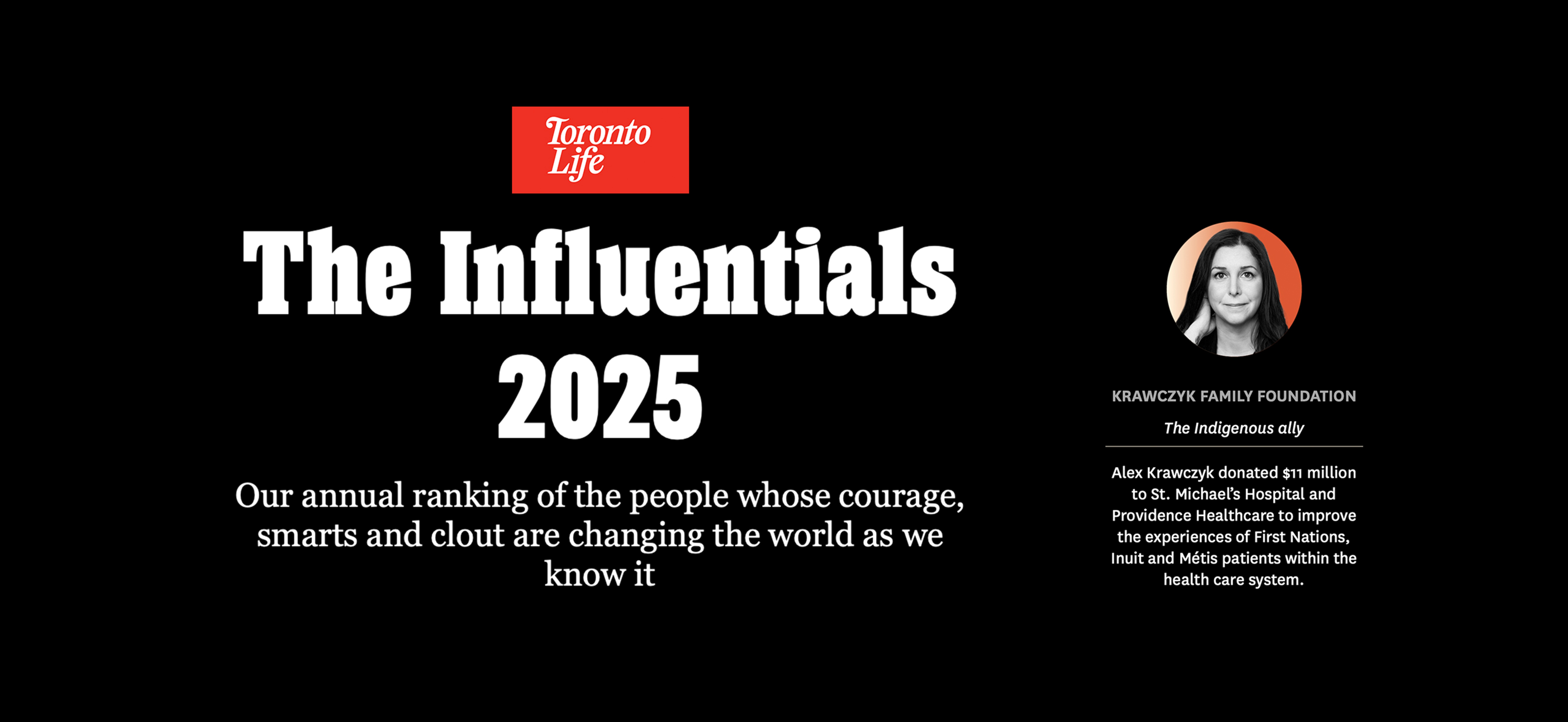 “I am so honoured to be recognized by Toronto Life for the work of the Krawczyk Family Foundation to improve the experiences of Indigenous people within the health care system,” said Ms. Krawczyk. “The process of reconciliation is a lifelong journey that must be rooted in healthy, respectful relationship-building with Indigenous people and Indigenous-led organizations. ”